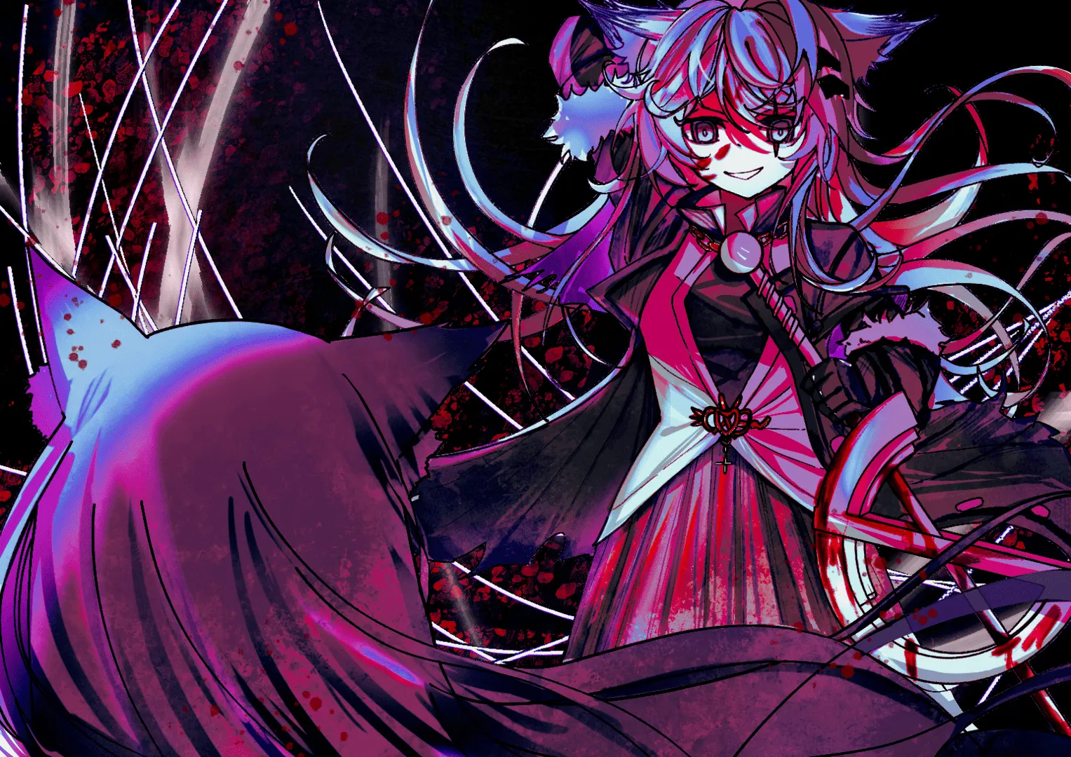 她回到车里,扭动钥匙启动发动机。不经意的抬头,德克萨斯看到后视镜中一张笑着的脸。狼耳,一只格格不入的黑色的发卡别在来着银色的头发上。