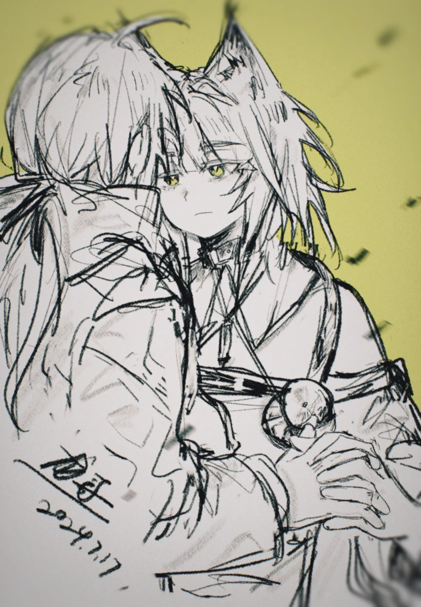 她的声音有些虚弱,还带着某种妥协似的态度。我从来没用听过凯尔希用那样的语气说话,惊讶使我没法立即做出回应。我动作僵硬地把手里的食物放在一边的桌案上,朝着凯尔希使了个眼色后,老老实实地从门口退了出去。掩上门时我留意到了那双藏在走廊拐角的长耳朵,我径直走过去,看见的是阿米娅那张惊惶的小脸,见到我时她的眼神不自然地闪烁着,想必她是听到了在办公室里发生的骚乱。